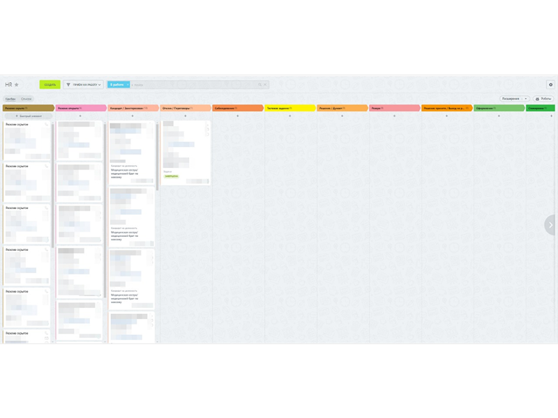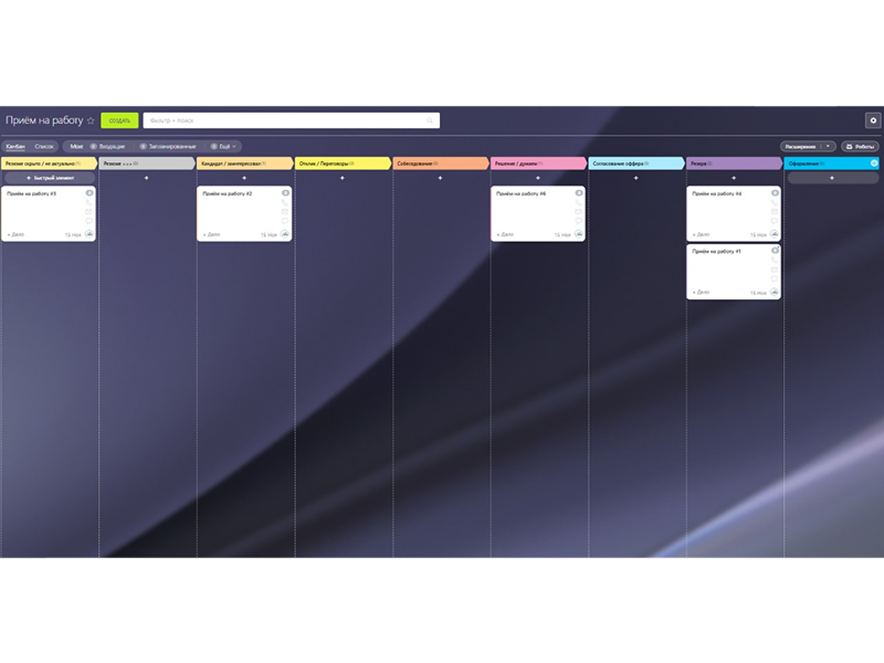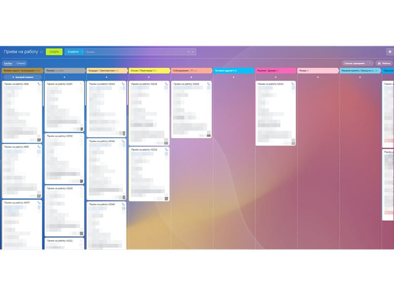 объединяет все этапы — от заявки в отделах до выхода кандидата на работу